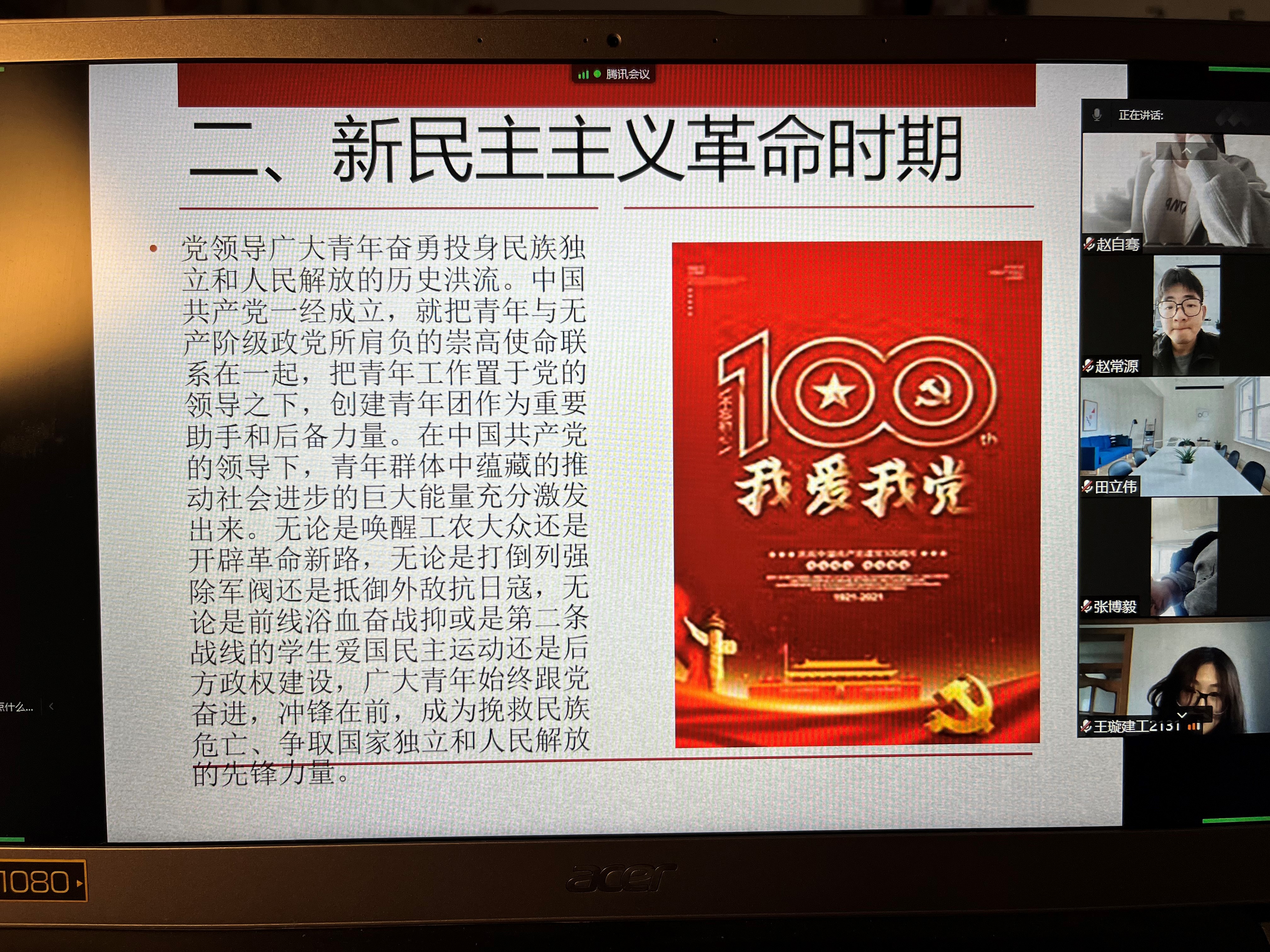 在此次专题学习活动中,各团支部根据防疫工作实际,贯彻落实疫情防控要求,在线上围绕“党的青年运动史”主题,以观看视频、专题发言、集体讨论等形式展开学习。同学们更加深刻了解了百年来无数青年在党的领导下所做出的杰出贡献,深切感受到了这一段艰辛而光辉的发展历程。