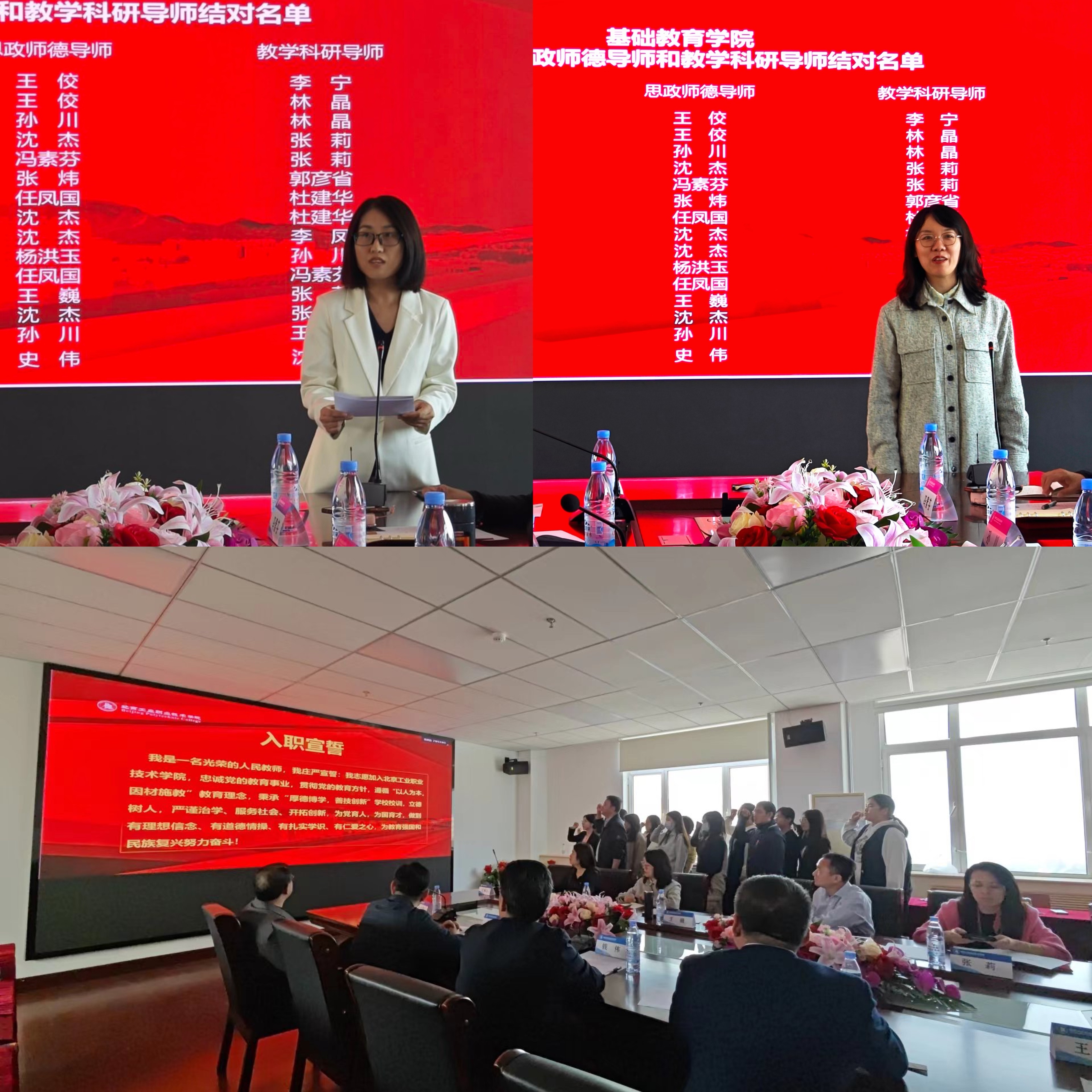新入职教师代表高莉发言,导师代表孙川副院长发言。会上王巍书记带领青年教师重温了入职誓言。