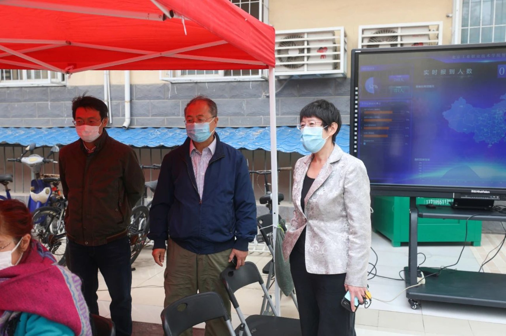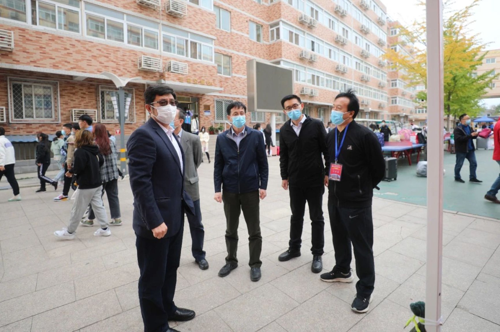 党委书记王伟(右三)、校长安江英(左一)等领导现场指导工作