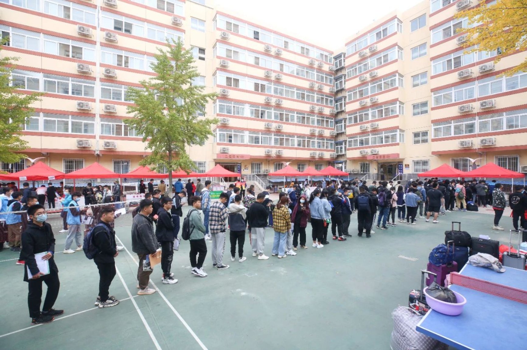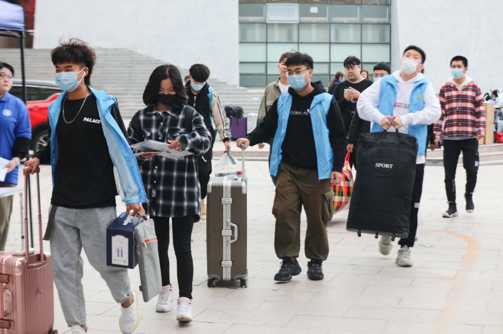 受疫情影响,今年新生报到以错峰入校、精准服务、安全有序为工作原则。为确保疫情防控安全,新生入校前须出示健康码、核酸检测报告,并进行体温测量,核验通过后方可入校。按照疫情防控要求,家长们不能参观校园,但早早等在校门口的老师和志愿者,热情地迎接了新生,并带领他们办理报到和入住手续。