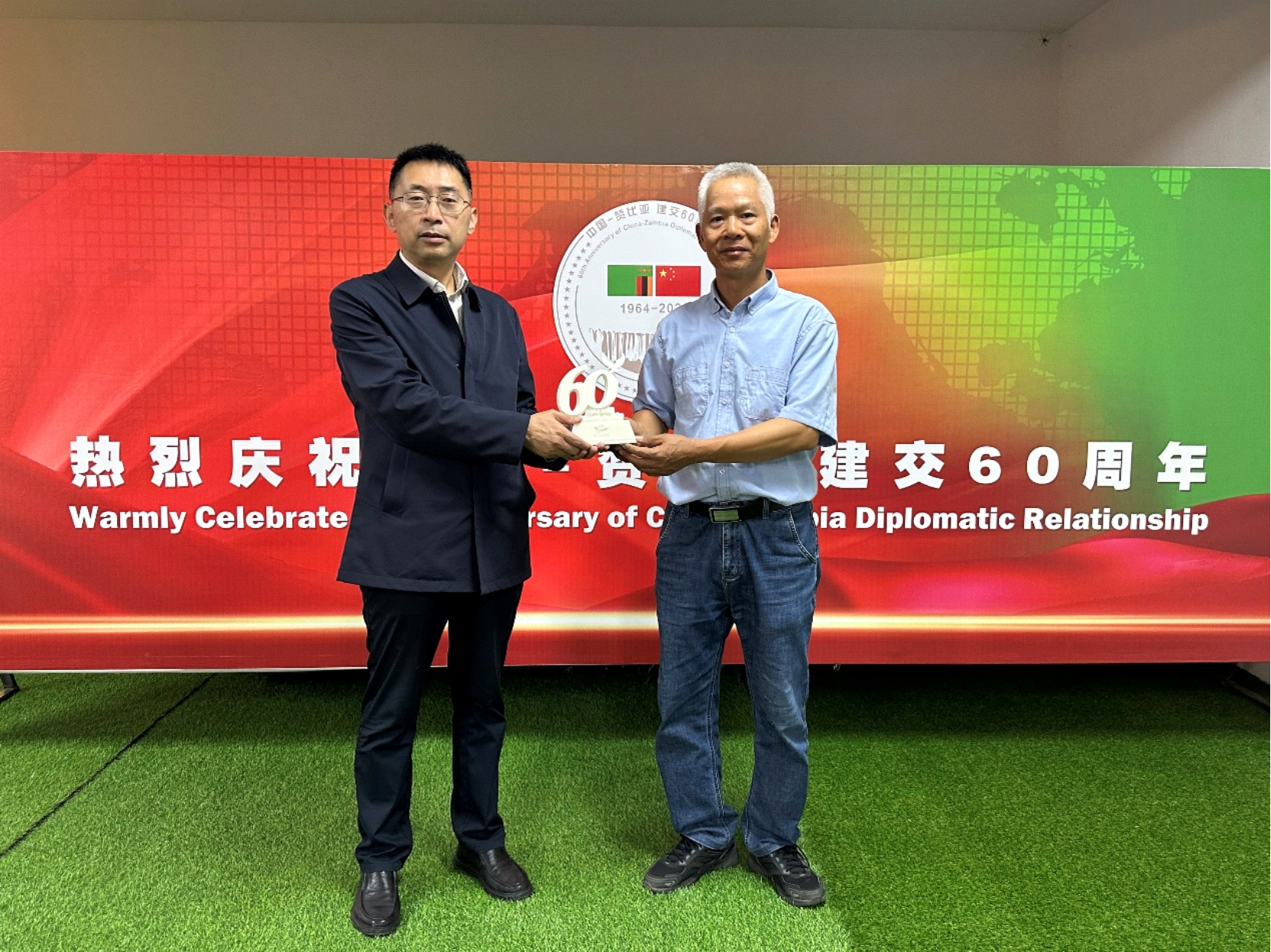 柳长安院长向铜带大开云网长Chrispin Kakbma赠送礼物
