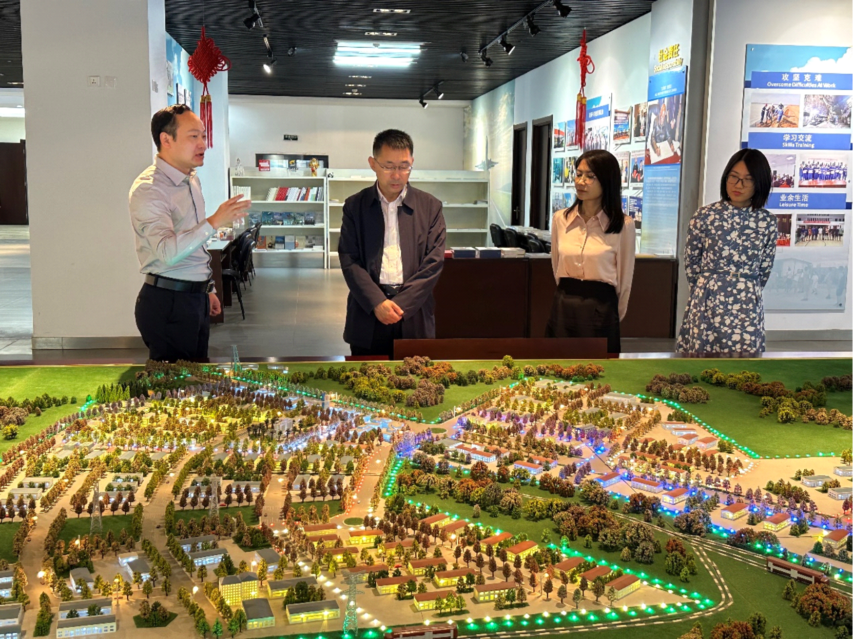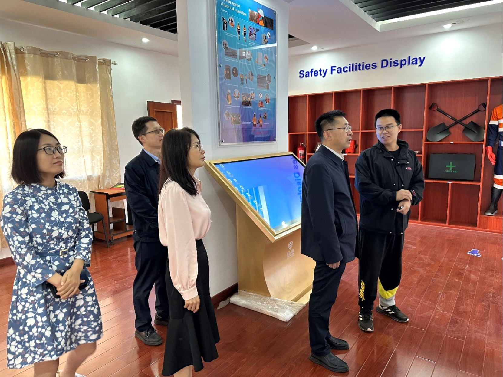 团组走访了部分中国有色集团在赞企业,柳长安院长在中色非洲有限矿业公司党委副书记、纪委书记徐来祥和办公室主任陆军主任的陪同下,参观了中色非矿培训中心教室和实训室,包括企业特色项目井下驾驶模拟训、VR仿真安全培训等。座谈中徐来祥书记希望借鉴中赞职院模式,在企业员工培养、师资培训、教学资源开发方面加强校企合作,双方就具体合作模式和细节进行了探讨。在中赞经贸合作区,公司副总经理崔海亮带领团组参观了展厅,详细介绍了中国有色集团在赞比亚发展的沿革和历史。