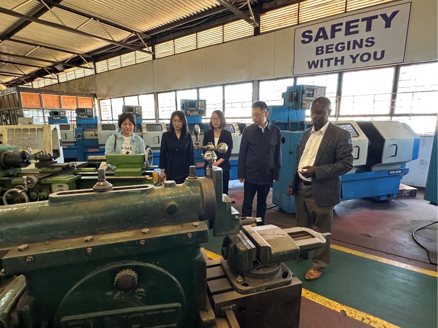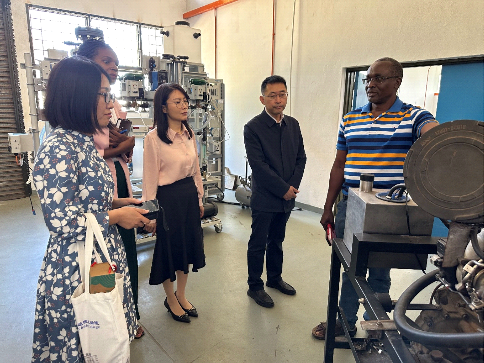 团组首先访问了赞比亚的著名学府——赞比亚铜带大学。在校长助理Olivia Chisha女士的陪同下,参观了机械工程学院和土木工程学院等多个学院的实验室及实训室。CBU校长Nyambe教授和副校长Chisale教授接待了团组并举行座谈,CBU方面表示愿意在多个专业领域与我校进行深度合作,共同培养职业人才,并推动学分互认制度的实施。