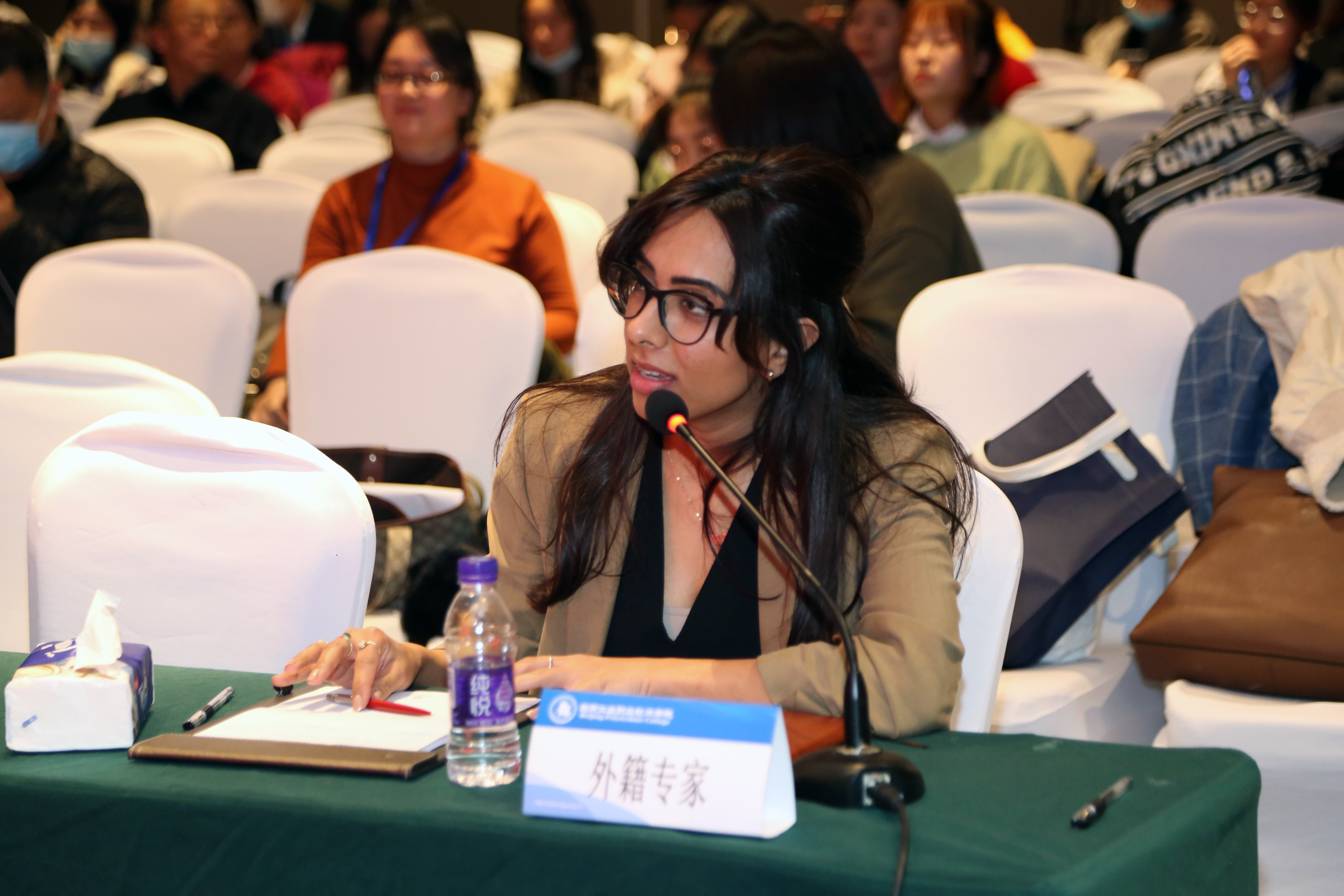 由北京市大学英语研究会理事组成的评委团,评判专业,保证了大赛的公平、公开与公正。闭幕式上,外籍专家Harsimran Kaur Sandhu高度赞赏了参赛选手们的语言能力、专业技术和现场表现,并表示自己被选手们讲述的精彩故事和演讲魅力深深打动。张舍茹教授在赛后总结中赞赏了参赛选手在“外研社·国才杯”全国英语演讲大赛这个舞台上的优异表现和热情自信。同时,她还从演讲技巧、表达能力、语言使用和心理准备等方面,为选手们提供了宝贵的提升建议。