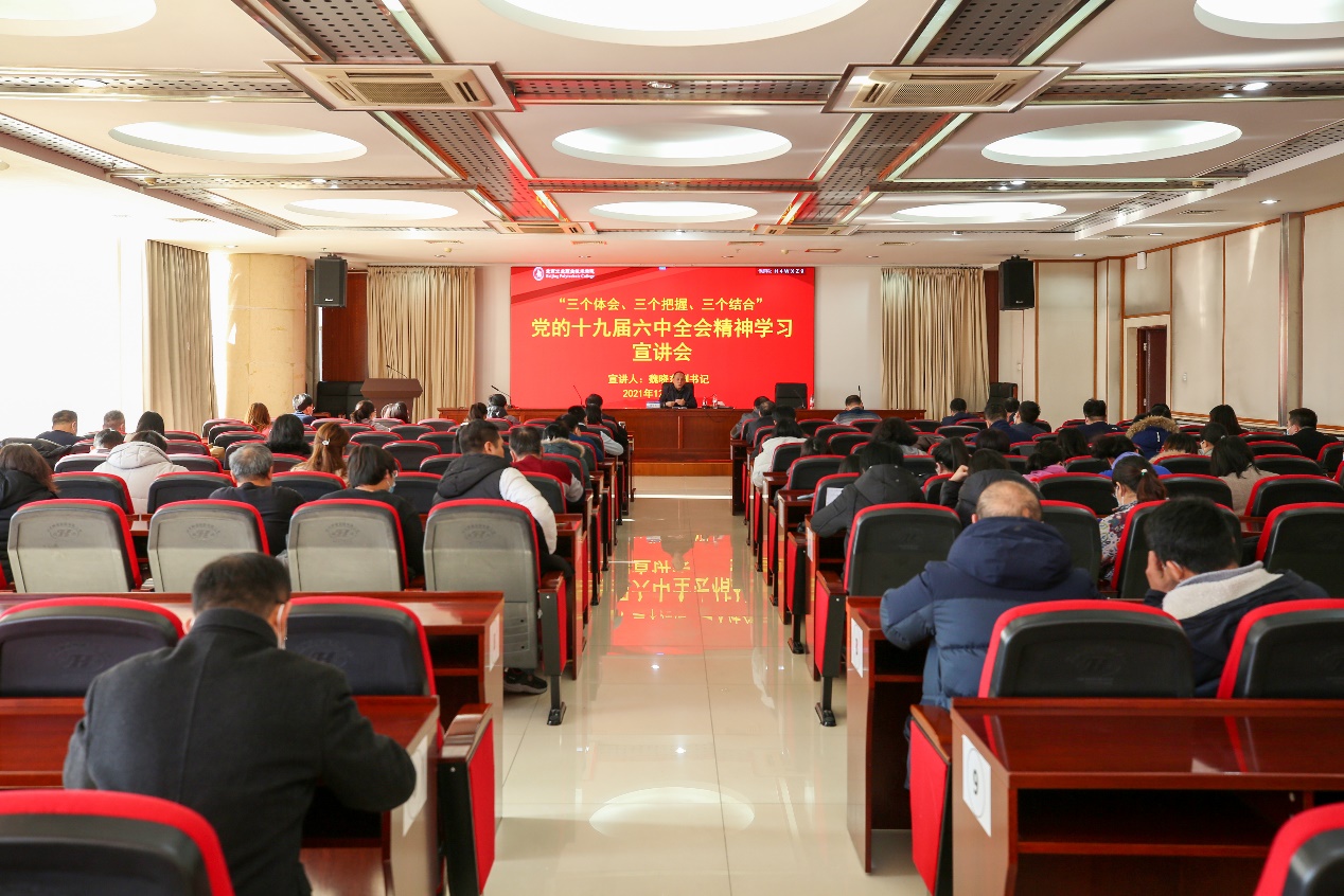 2021年12月24日下午,校党委副书记魏晓东在匠心楼三层报告厅作了题为《百年奋斗继往开来全面落实立德树人的根本任务》的十九届六中全会精神专题学习报告。学工联合党总支和建筑与测绘工程学院党总支全体教职工参加宣讲会,宣讲会由学工联合党总支书记贺继伟主持。