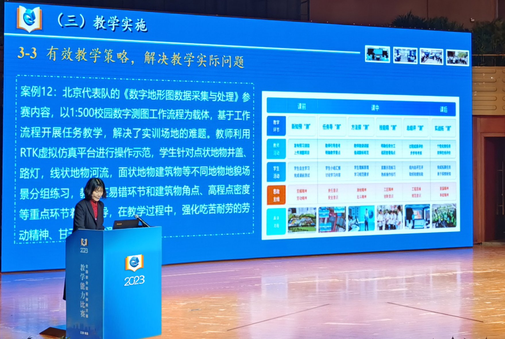此次大赛来自全国36个代表队,共有278支队伍参加,我校参赛团队经过“开云网-北京市-全国”三级比赛脱颖而出,获得全国一等奖,为北京市唯一一等奖作品。本届国赛高职组共有404件作品,我校参赛作品作为优秀案例,在闭幕式上获得全国职业院校技能大赛教学能力比赛执委会评判组主任姜丽萍教授的展示与好评。同时,由大赛执委会遴选,参赛团队被推荐参加中国教育电视台2023年全国教学大赛优秀团队教学风采录制。