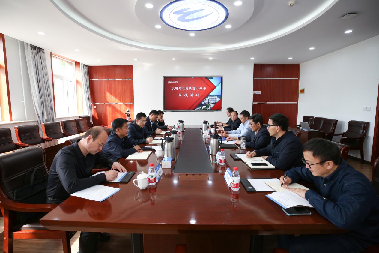 5月12日,河北省教育厅党组成员、副厅长张春生,职成教处处长史帆,河北石油职业技术大学党委书记王军等一行5人来我校调研交流。我校党委书记高喜军,党委副书记、院长安江英,党委常委、院长助理谢光辉参加此次调研交流。