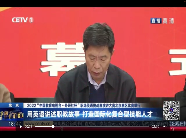 我校已连续五年承办北京赛区的比赛。中国教育电视台在2022年11月6日在CETV1的《全国教育新闻联播》中对本次赛事进行了报道,并采访了我校教务处处长王佼。赛后,参赛师生对我校的精心组织高度认可。他们纷纷表示,整场大赛筹备充分周到,线上线下井然有序,赛事流程公正严谨,助力大赛选拔出了一批出色、优秀的人才,帮助选手们激发潜能,成就自我。