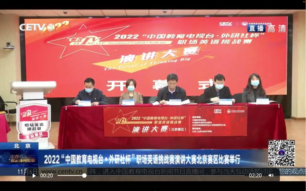 11月4日,2022“中国教育电视台·外研社杯”职场英语挑战赛演讲大赛北京赛区比赛在我校顺利举办。大赛采用“线上演讲、线下评议”的方式进行,来自北京地区18所院校的53名选手及指导教师参加了本次大赛。我校公共英语教研室的于天娇老师指导无人机2071班张子文获得一等奖,动漫设计2233班刘昕羽和电子商务2231班任双梅获得三等奖。