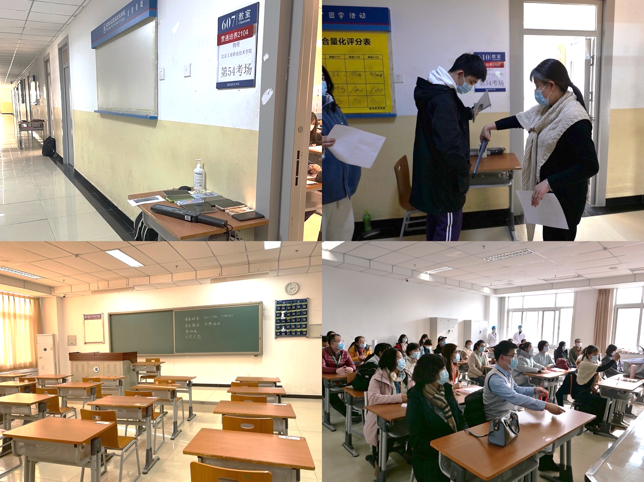 考试期间,石景山区考试院焦书记全程跟进指导,副校长刘兰明、教务处长王佼多次到考试现场巡视,检查整体考务情况、屏蔽设备及考场布置情况,并对后续工作给予指导。基础教育学院领导班子陪同巡视考场,并汇报相关情况,全体教职工严阵以待,严肃考场纪律,应对突发事件。监考老师认真履职,维持考试秩序,解决学生疑难,确保贯通培养学生2022年首次学业水平测试的顺利进行。