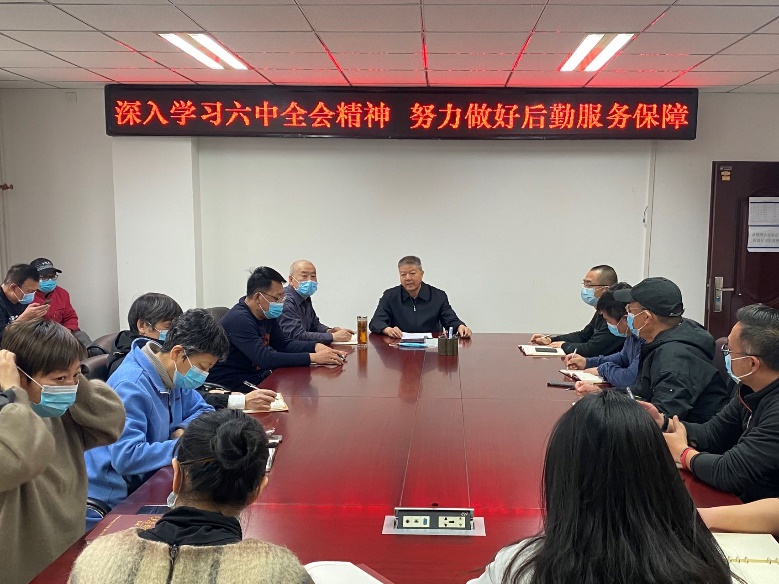 王希忠副校长还结合学习成果和工作实际与后勤职工分享了四点认识:一是深刻认识学习贯彻十九届六中全会精神的重大意义,增强学习的自觉性和主动性;二是坚持党的领导,坚决拥护两个确立,保证正确的政治方向;三是坚持人民至上,践行为广大师生服务思想,做好接诉即办、未诉先办;四是扎实履职尽责,强化担当作为,高质量做好后勤保障工作。
