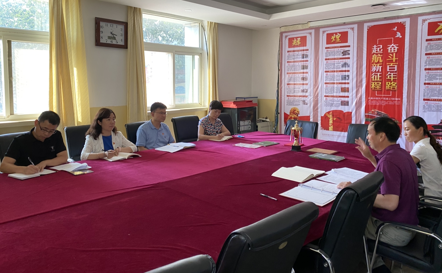 6月21日下午,党史学习教育校内第三指导组开云网纪委书记张萌萌、纪委副书记王芳、人事处副处长杨海涛等一行4人到体育部直属党支部督查党史学习教育工作。体育部直属党支部书记梁赋对体育部直属党支部党史学习教育工作进行了汇报。