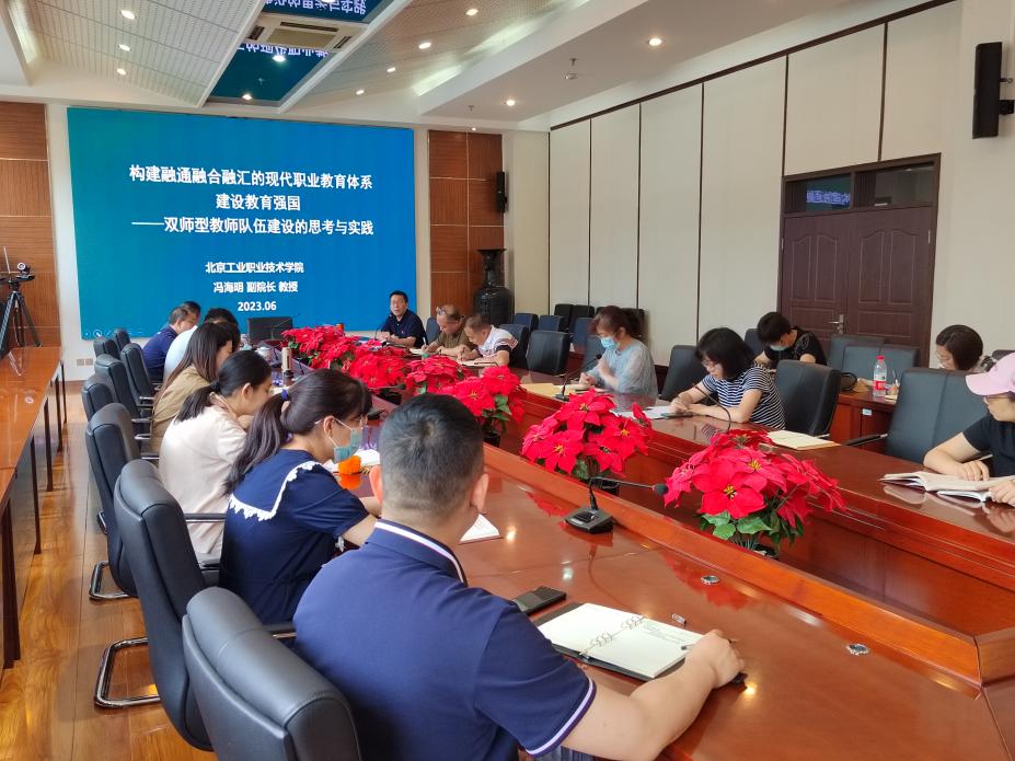 冯海明副校长要求扎实推进高水平“双师型”教师队伍建设。习近平总书记强调,强教必先强师。要把加强教师队伍建设作为建设教育强国最重要的基础工作来抓,健全中国特色教师教育体系,大力培养造就一支师德高尚、业务精湛、结构合理、充满活力的高素质专业化教师队伍。弘扬尊师重教社会风尚,提高教师政治地位、社会地位、职业地位,使教师成为最受社会尊重的职业之一,支持和吸引优秀人才热心从教、精心从教、长期从教、终身从教。加强师德师风建设,引导广大教师坚定理想信念、陶冶道德情操、涵养扎实学识、勤修仁爱之心,树立“躬耕教坛、强国有我”的志向和抱负,坚守三尺讲台,潜心教书育人。对于职业教育教师队伍建设,我们要加强“双师型”教师队伍建设。一是加强师德师风建设,切实提升教师思想政治素质和职业道德水平。二是加强教师培养培训,不断提升教师专业素质与实践能力。三是提升教师双师素质,建设双师教师队伍。四是完善教师管理机制改革,激发教师队伍创新活力。