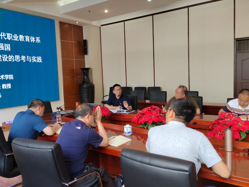 冯海明副院长首先系统梳理了习近平总书记关于职业教育和教师队伍建设的系列重要讲话。习近平总书记在中共中央政治局第五次集体学习时强调,加快建设教育强国,为中华民族伟大复兴提供有力支撑。习近平总书记强调,教育兴则国家兴,教育强则国家强。建设教育强国,是全面建成社会主义现代化强国的战略先导,是实现高水平科技自立自强的重要支撑,是促进全体人民共同富裕的有效途径,是以中国式现代化全面推进中华民族伟大复兴的基础工程。习近平总书记的重要讲话,为我们建成教育强国指明了前进方向。加快建设教育强国、加快推进教育现代化,将是未来一段时期内我国教育改革发展的主要任务。
