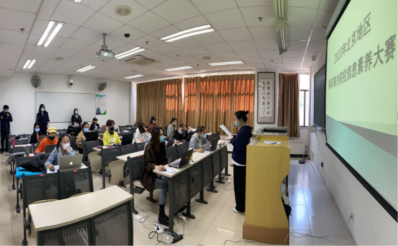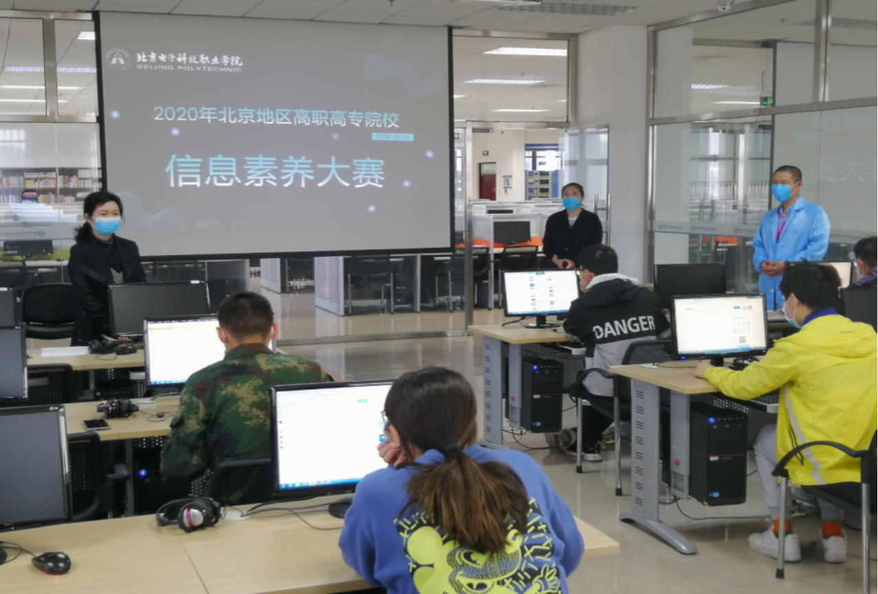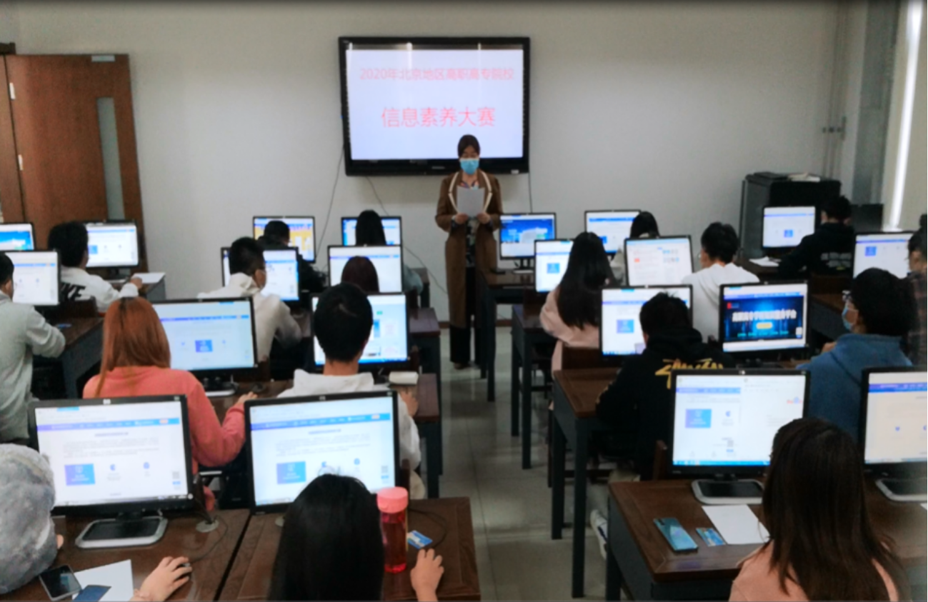 自9月9日动员会以来,参赛各校高度重视,纷纷积极开展信息素养教学宣传活动,配备专职辅导老师,开设信息素养课堂,举办多级校赛,最终从300多名学生中选拔出160多名学生参加了北京地区赛。因疫情防控要求,北京地区赛采取了各校设置分赛场,统一题库、统一时间考试的形式,大赛由中国高等教育文献保障系统 CALIS指定比赛平台,在规定时间内上网答题,按个人成绩及答题时长进行全市排名统计,选拔参加 2020年全国高职高专院校信息素养大赛复赛选手。本次比赛多校合作,考场严谨有序,全程视频录像。