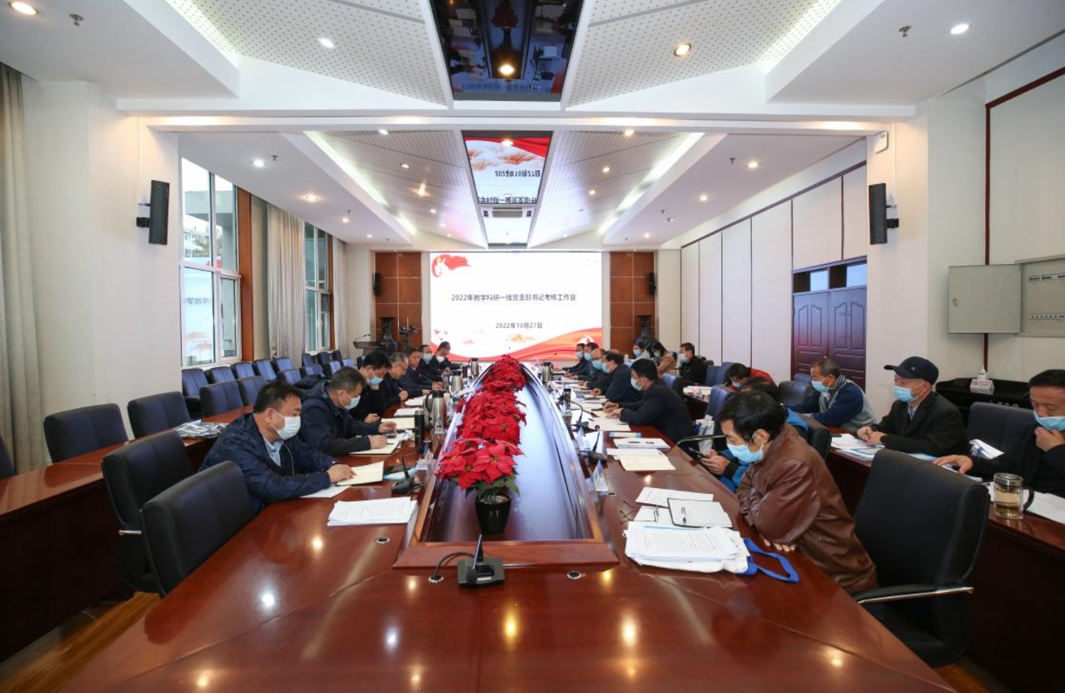 10月27日下午,我校在匠心楼第四会议室召开2022年度教师党支部书记“双带头人”考核会。党委书记高喜军、党委副书记魏晓东、党委职能部门负责人、全体党总支书记(直属党支部书记)及16名教师党支部书记参加了考核会。会议由党委副书记魏晓东主持。