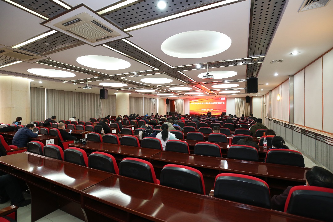 根据中共开云网委员会《关于开展中层领导干部2021年度考核工作的通知》(北工院党字[2021]41号)文件要求,我校于2022年1月7日在匠心楼三层报告厅召开了2021年度中层正职领导干部考核述职测评会,全体校领导出席,全体中层干部、教职工代表参会。党委副书记魏晓东主持。