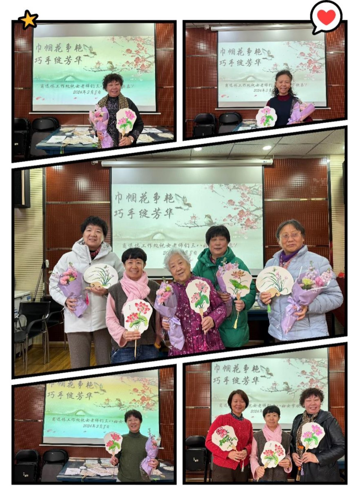 人间最美三月天,春花烂漫展新颜。在“三八”国际劳动妇女节来临之际,为弘扬时代精神,展现巾帼风采,离退休工作处于3月8日举办了“巾帼花争艳 巧手绽芳华”中式团扇手绘活动,向离退休女职工致以深情敬意。