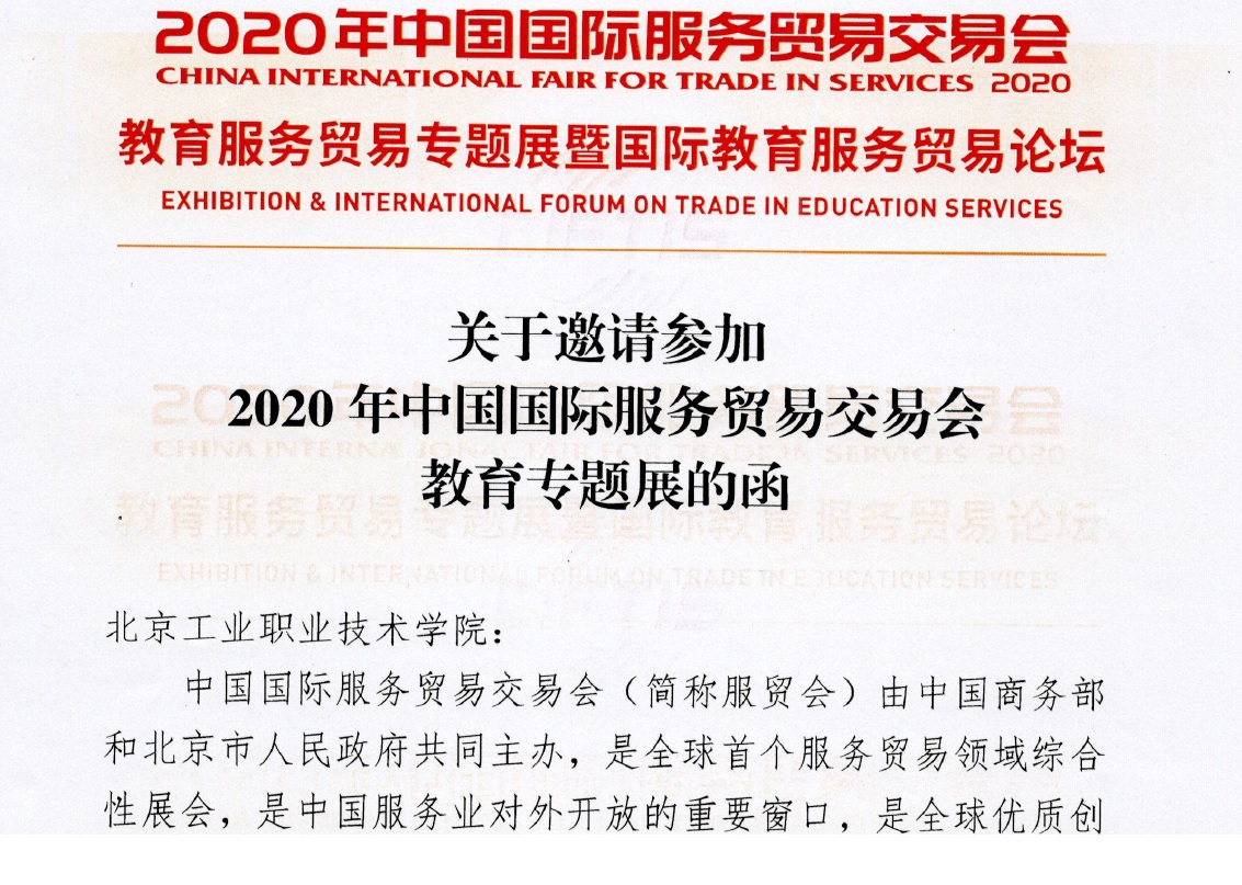 由教育部和北京市人民政府联合主办,北京市教育委员会承办的教育专题展和国际教育服务贸易论坛是2020年服贸会重点活动之一。北京市教委对我校的国际化办学成果给予了充分肯定,特指定我校为代表参加服贸会教育专题展和国际教育服务贸易论坛。