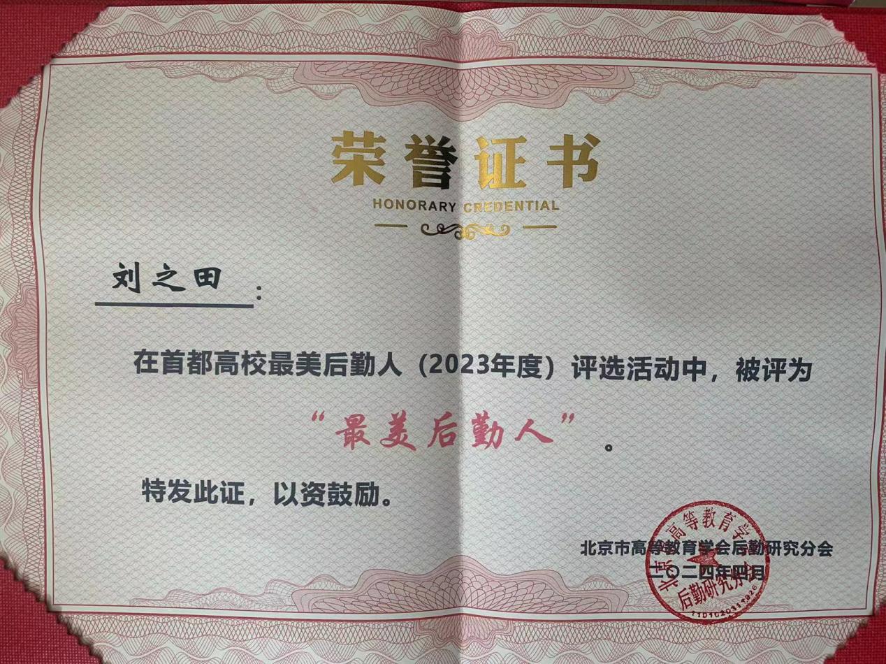 2023年度首都高校“最美后勤人”荣誉证书