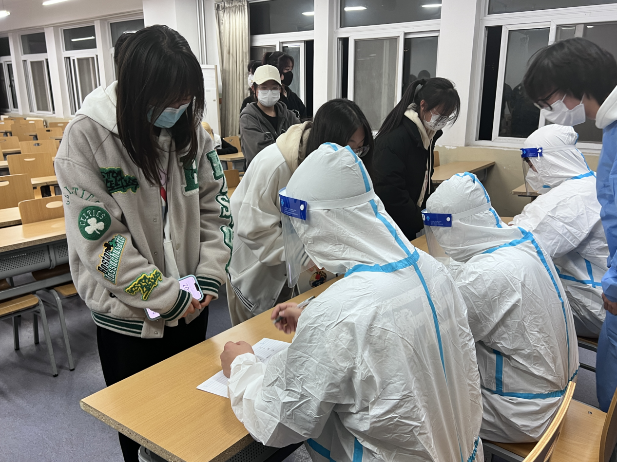11月9日晚自习时,志愿者们提前进入演练教室为演练做好准备。晚上8:00活动正式开始,应急演练主要模拟了工作人员按照要求对学生进行身份核验、体温检测、信息登记等,以及在不同场景下学生出现体温异常时,学院疫情防控工作小组全过程处置流程。其次还模拟了流调工作,流调信息包括:收集个人信息、校外活动轨迹、返校方式以及重点描述校内活动轨迹等四个方面。演练全程志愿者均严格做好自身疫情防控措施。