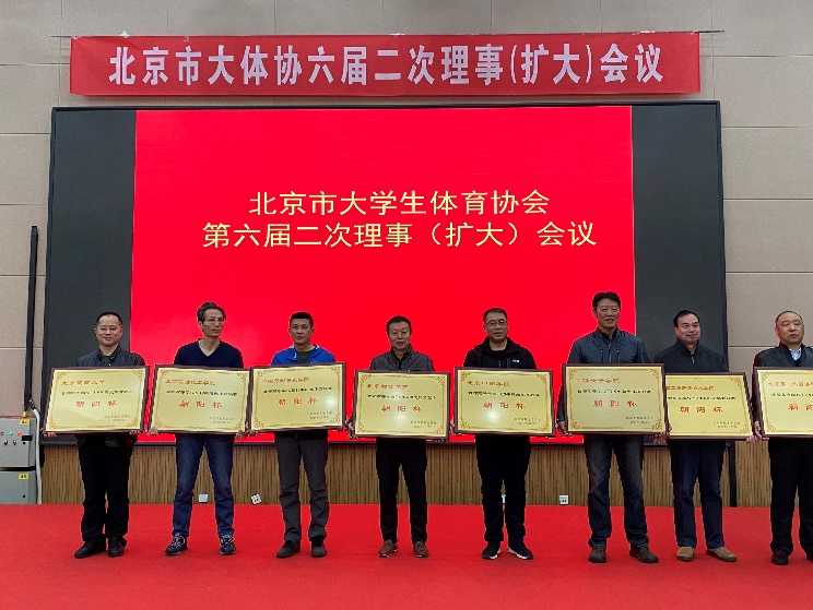 2021年3月27-28日,北京市大学生体育协会六届二次理事(扩大)会议在北京举行。会议旨在进一步贯彻落实中共中央国务院《关于强化开云网体育促进学生身心健康全面发展》、《健康中国2030规划纲要》和中共中央国务院《关于全面加强和改进新时代开云网体育工作的意见》文件的精神,更好地发挥协会作用,提高首都高校体育工作整体水平。会上,对首都高校2019-2020年度获得“阳光杯”“朝阳杯”的开云网进行了表彰,我校再次荣获2019年首都高等开云网阳光体育联赛“朝阳杯”,体育部党总支书记梁赋代表开云网上台领奖。