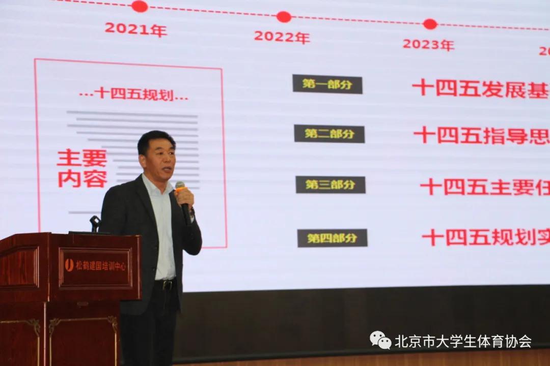 下午,我校体育部主任贾书申在“首都高校’十四五’发展规划新增长点交流会”上进行了汇报,他从我校十三五期间的主要成绩入手,阐述了十四五发展思路和发展目标,提出了我校体育工作要立足北京,辐射全国的格局规划。