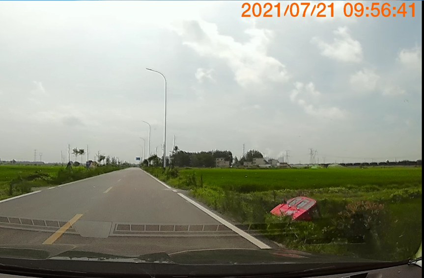 2021年7月21日上午9时56分,北煤机电公司山西办事处经理宋永祥和工程师张锐、贾彦纲到安徽淮南潘集选煤厂出差,在驾驶车驶离潘集选煤厂大门约100米处,突然发现路前方有一个红色的封闭式电动三轮车侧翻掉进路边的水塘里。