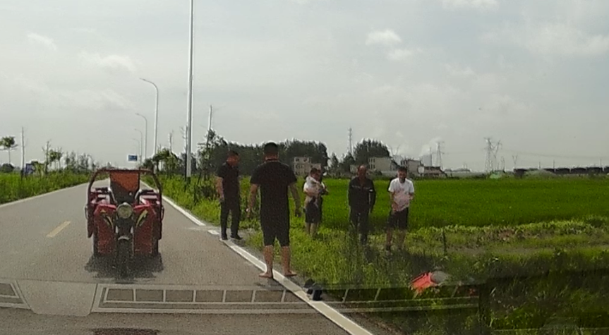 一同在岸边协助救人的还有一名驾驶三轮车路过的男子。路过的男子伸手把张锐拉上岸,宋永祥从水塘的另一侧上岸。