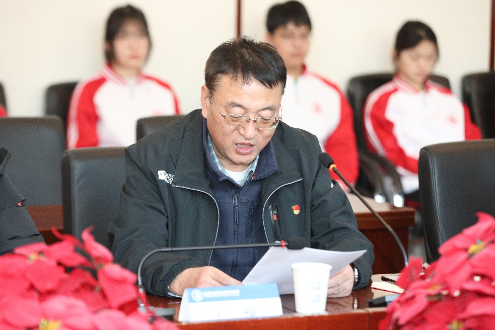 副院长史运涛宣读“关心下一代工作奉献奖”表彰决定,青年学生代表向荣获奉献奖的老同志献花,党委书记高喜军为荣获奉献奖的老同志颁发了荣誉证书。
