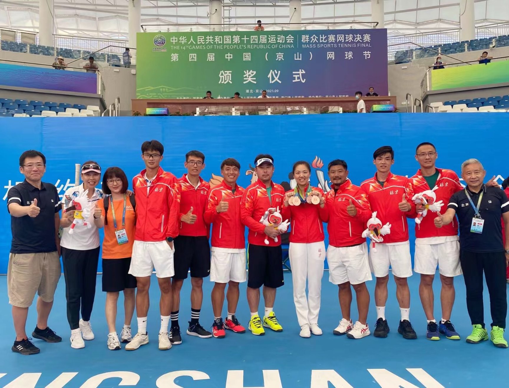 9月16日—25日张宇頔老师和队友共同努力,经过多场激烈的比赛,最后,战胜东道主陕西队,为北京市获得了本届全运会群众网球比赛的铜牌,为北京市争得了荣誉,也为我校争得了荣誉。同时,张宇頔老师作为主力队员,表现优异,获得了“第十四届全运会体育道德风尚奖”,取得了运动成绩和精神文明双丰收。