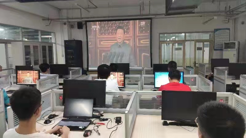 7月1日上午8时,庆祝中国共产党成立100周年大会在北京天安门广场隆重举行。校团委组织全校团员青年集中收听收看中国共产党成立100周年庆祝大会盛况直播,聆听习近平总书记重要讲话,见证伟大成就,激昂爱国爱党热情,坚定理想信念。
