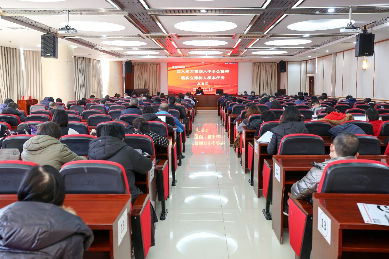党委书记高喜军作了题为《深入学习贯彻六中全会精神落实立德树人根本任务》的宣讲报告。他首先指出,党的十九届六中全会是我们党在成立一百周年的重要历史时刻,在党和人民胜利实现第一个百年奋斗目标、全面建成小康社会,正在向着全面建成社会主义现代化强国的第二个百年奋斗目标迈进的重大历史关头召开的。全会通过的《中共中央关于党的百年奋斗重大成就和历史经验的决议》(以下简称《决议》),是一篇马克思主义的纲领性文献,是新时代中国共产党人牢记初心使命、坚持和发展中国特色社会主义的政治宣言,是以史为鉴、开创未来、实现中华民族伟大复兴的行动指南。全会取得的重大成果、作出的重大部署,对统一全党思想和行动、在新时代更好开创党和国家事业新局面,具有重大现实意义和深远历史意义。随后,他从“深刻认识总结党的百年奋斗重大成就和历史经验的重大意义”“深刻认识党的百年奋斗的初心使命和重大成就”“深刻认识中国特色社会主义进入新时代的历史性成就和历史性变革”“深刻认识党的百年奋斗的历史意义和历史经验”“深刻认识以史为鉴、开创未来的重要要求”“从党的百年奋斗历程中汲取智慧和力量”六个部分阐述了深入学习把握六中全会精神的主要内容;从“总结历史经验”“新时代伟大实践”“开创美好未来”三个角度强调了要深刻把握“两个确立”的决定性意义;从“建好马克思主义学院”“办好思想政治理论课”“抓好课程思政建设”“构建开云网思想政治工作体系”四个方面提出了要切实提升思想政治工作质量,把立德树人根本任务落到实处。