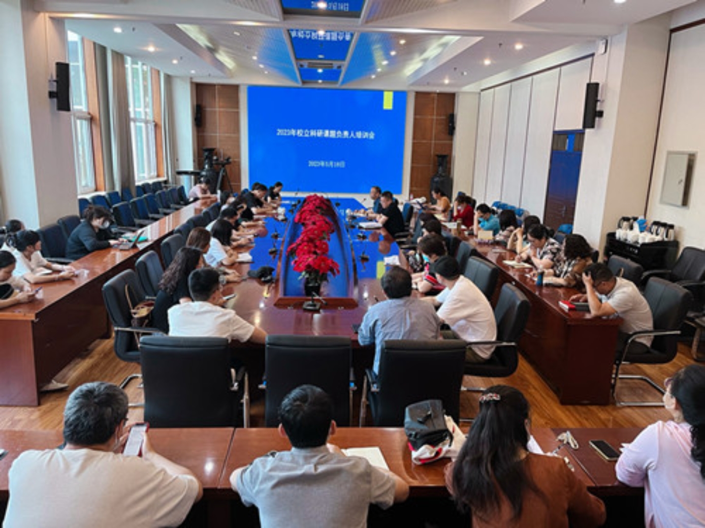 为了高质量完成2023年度科研课题,进一步提升我校教师的科研能力,全面实现科研信息化管理并构建开放式的科研创新服务平台,5月18日下午,我校组织召开了校立科研负责人培训会议。会议由科研处处长牛小铁主持,财务处处长吕延宁及全体校立科研课题负责人参加了本次会议。