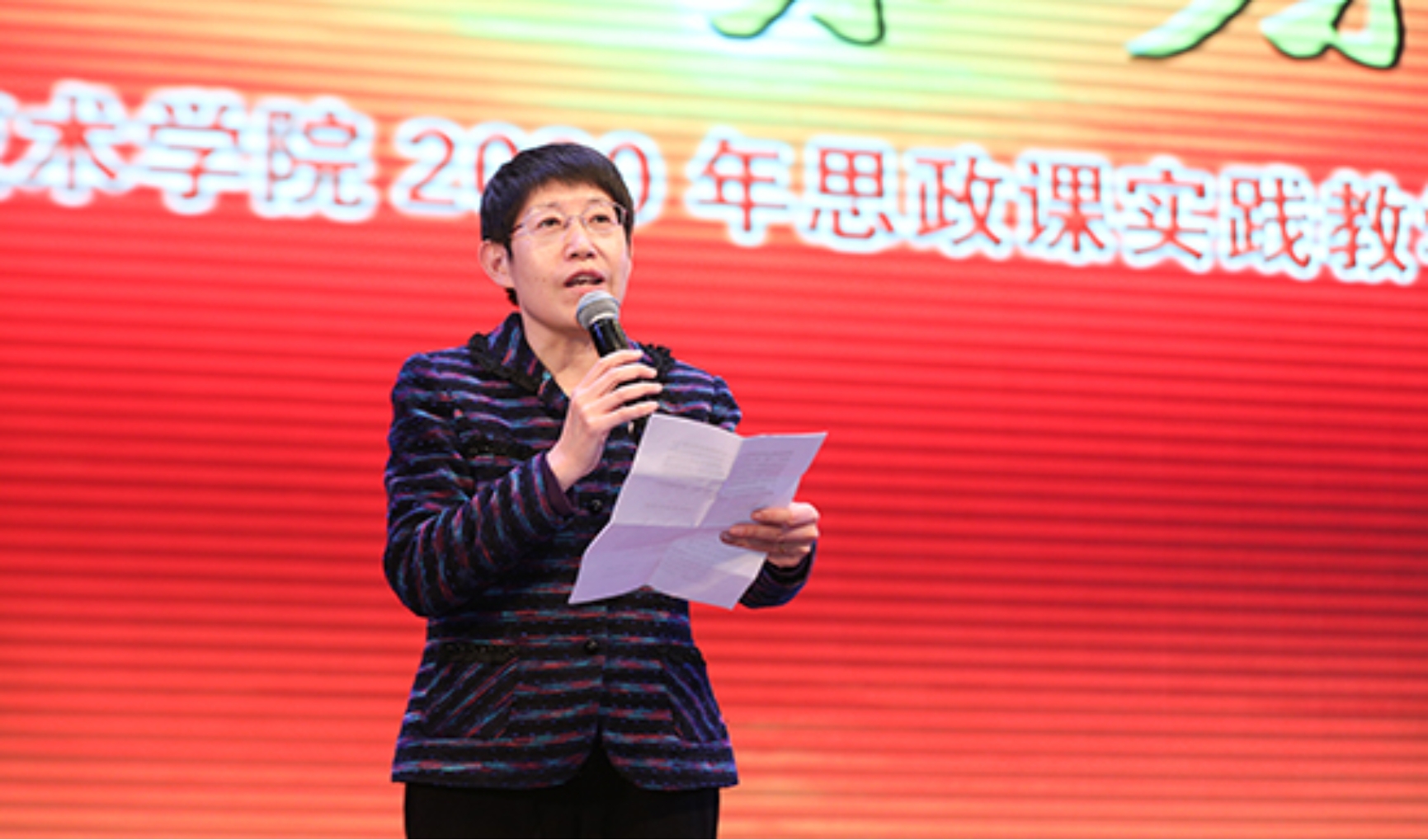2020年12月22日,我校2020年思政课实践教学成果汇报会在开云网礼堂隆重举行。校党委书记王伟、副校长周燕,思想政治理论课教学部、党委宣传部、学生工作处、教学质量监控中心等相关部门负责人,各学院党总支书记、副书记出席会议,思想政治理论课教学部全体教师和2020级学生代表参加汇报会。