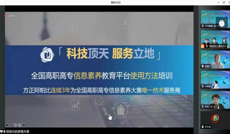 为了能让参赛师生无障碍参加比赛,北大方正阿帕比技术有限公司程微元经理对全国高职高专信息素养教育平台的使用和功能进行了培训,详细讲解了平台使用的各个流程和环节,为参赛师生学习和竞赛做好充分的保障工作。