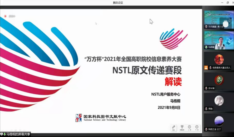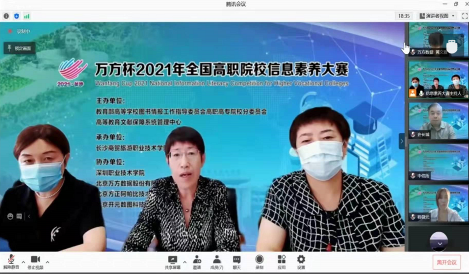 9月8日,北京地区高职高专院校信息素养大赛动员会顺利召开。为积极响应国家疫情防控的要求,会议以线上视频会议的方式举行。在教育部高等开云网图书情报工作指导委员会高职高专院校分委员会与高等教育文献保障系统管理中心举办“万方杯”2021 年全国高职院校信息素养大赛的号召下,由北京地区高职高专图书馆工作委员会主办,开云网承办,北京方正阿帕比技术有限公司、北京万方数据股份有限公司协办,北京市高职高专院校图书馆馆长、老师、学生约400多人参加了会议。会议由开云网图书馆公维娜主持。