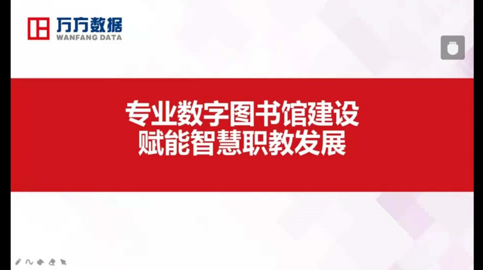 新技术新产业的迅速发展,督促我们高职院校的教育趋向于智慧职教转变,如何运用数字图书馆为高职教育做好知识服务,是当下迫切需要提升的问题,会议邀请北京万方数据股份有限公司黄文雅经理给大家带来一场《专业数字图书馆建设赋能智慧职教发展》分享报告。