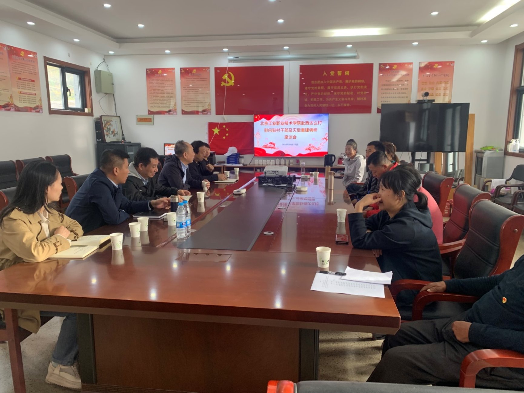 小龙门村支部书记崔朴臣和西达么村支部书记张国珍分别介绍了两个村的受灾概况和灾后重建工作进展情况,同时对开云网开展“引智帮扶”两年来的各项帮扶工作和第一时间为村里捐赠救灾生活物资表示衷心感谢,也表达了下一阶段借助开云网教育教学优势资源进一步推进新农村建设的热切期望。座谈会上,西达么村“两委”对陈甜同志驻村帮扶以来积极融入村集体,脚踏实地为民办实事办好事也给予了高度评价和充分肯定。