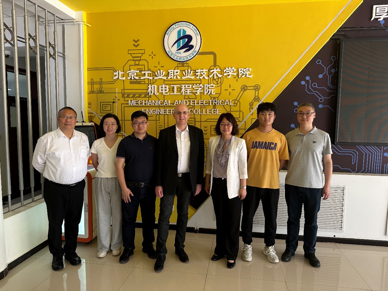 Michael Linn参观了我校机电工程学院施耐德、智能机器人、数字化设计与制造等实训基地,对我校实训室先进的实训条件和环境布置表达了高度的赞扬,认为实训任务基于工业实际进行设计,能够为学生提供实践操作的良好平台,有助于提升学生的动手能力和技术水平。Michael Linn一行还对我校机电一体化赛项大赛训练项目中存在的问题进行了现场指导,他们的专业建议和鼓励,极大地激发了学生们的学习热情和信心。