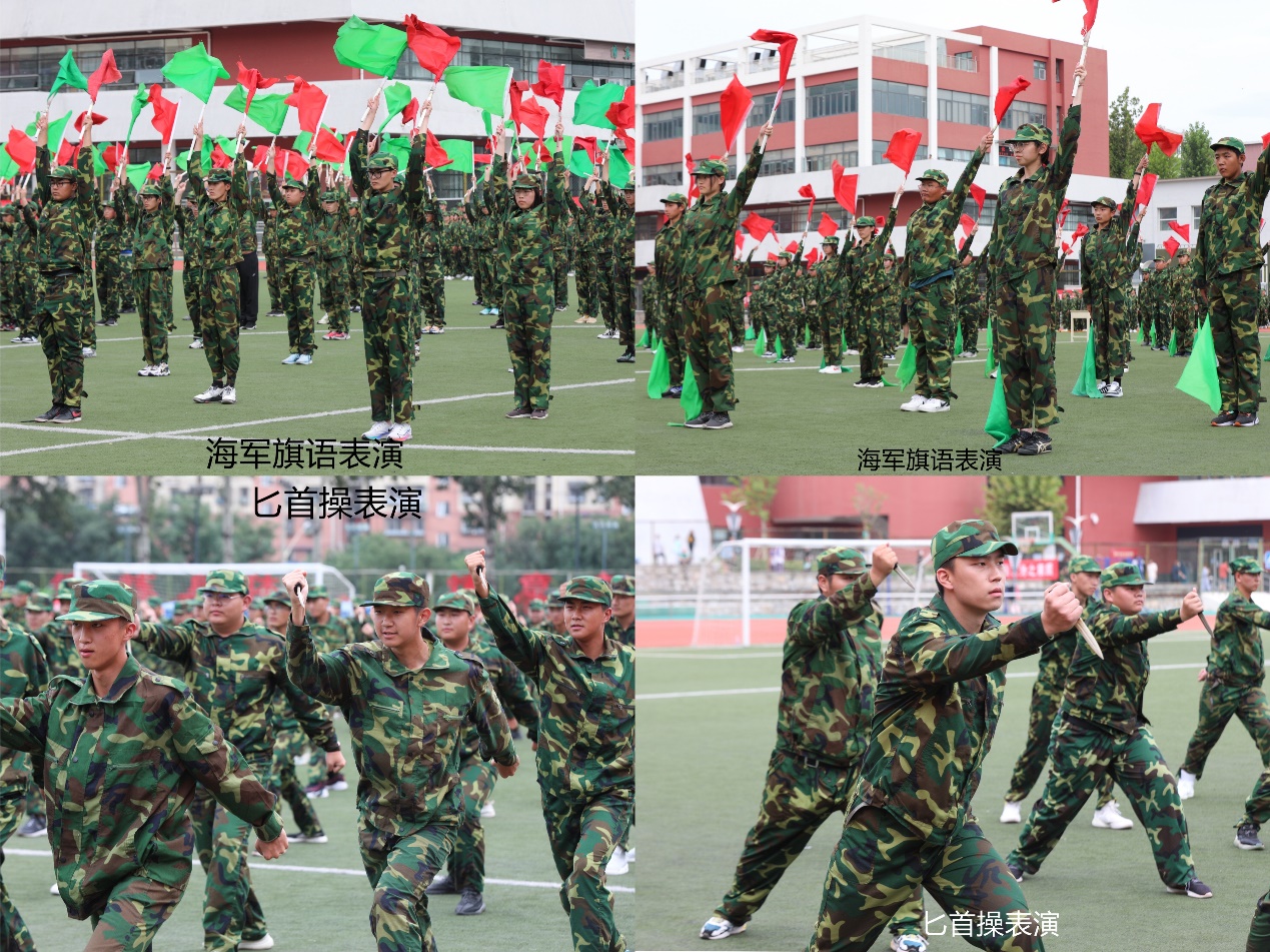 典礼仪式在庄严雄壮的国歌声中拉开帷幕,历经十余天的军事训练锤炼1720名新生精神抖擞,在分列式检阅中他们身着戎装、迈着整齐的步伐、喊着嘹亮的口号走过主席台,以饱满的热情、昂扬的斗志展示了朝气蓬勃、奋发有为的精神风貌。之后擒敌拳、刺杀操、匕首操、海军旗语、三声三相方队的精彩展示一令一动、利落坚定,一招一式、铿锵有力赢得在场师生的阵阵热烈掌声。