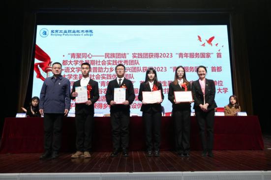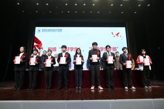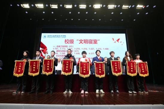 校党委常委、副院长史运涛宣读2022-2023学年校级“文明寝室”、校级“三好学生”、“优秀学生干部”、校级“先进班集体”、2023年青年服务国家首都大学生暑期社会实践优秀团队、2023年北京“千人百村”大学生暑期社会实践优秀组织奖、乡村文明建设优秀个人表彰决定。与会领导为获得荣誉的集体和个人颁发证书。