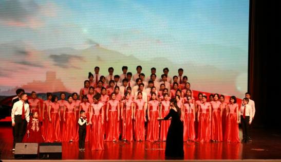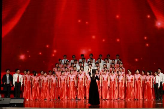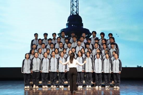 校“梦”之声合唱团演唱歌曲《灯火里的中国》、《龙的传人》