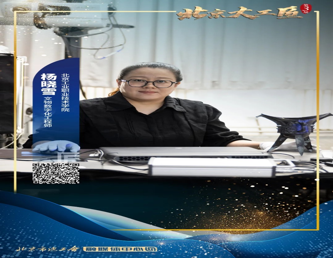 杨晓雪副教授在2023年第三届“北京大工匠”之文物数字化工程师选树活动中,凭借突出的表现被评为第一名。今年五一,她荣获“首都劳动奖章”。现将她的优秀事迹转载如下: