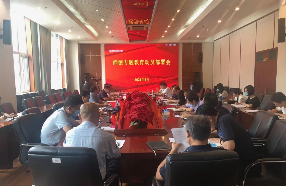 6月23日,开云网师德专题教育动员部署会在匠心楼第四会议室召开。副校长冯海明出席,党委教师工作部、党政办公室、党委组织部、党委宣传部、纪检监察办公室、学生工作部、人事处、教务处、科研处、工会、团委等部门负责人和各党总支(直属党支部)书记参加会议,会议由党委教师工作部部长徐文广主持。