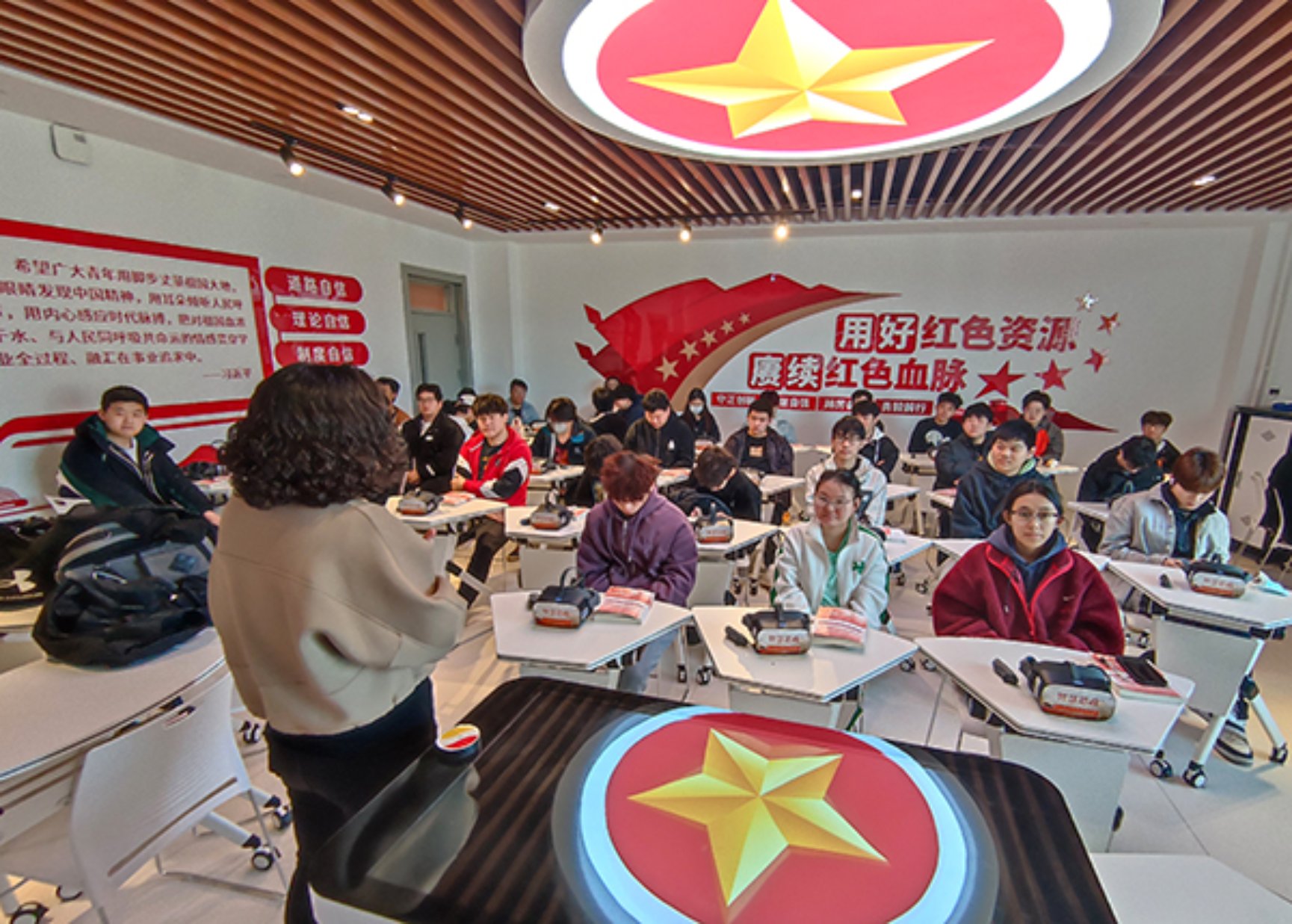 日前,马克思主义学院思政课虚拟仿真体验教学中心正式投入使用。利用数字化虚拟仿真技术和思政体验课程,主动适应数字化时代大学生的学习方式和特点,让学生在“视听触”的虚拟仿真环境中“沉浸式”体验中国共产党百年辉煌历程,完成“不同凡响”的思政课学习体验。