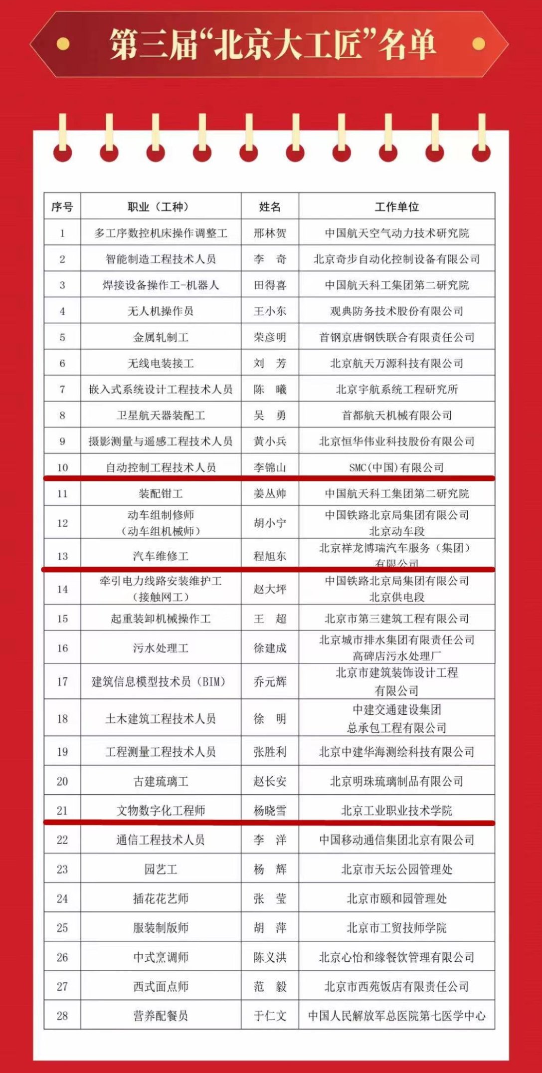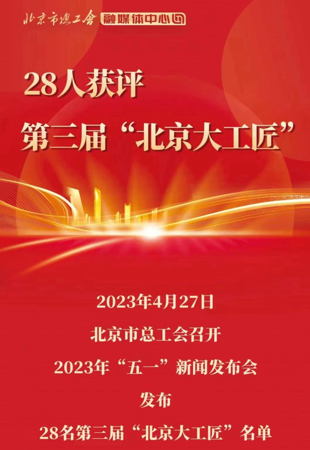 为在全社会大力弘扬劳模精神、劳动精神和工匠精神,2022年3月,北京市总工会启动了第三届“北京大工匠”选树活动,共确定28个职业(工种)。本次的选树项目突出了新兴科技与传统行业相结合,更加符合首都产业发展方向,体现首都特色。