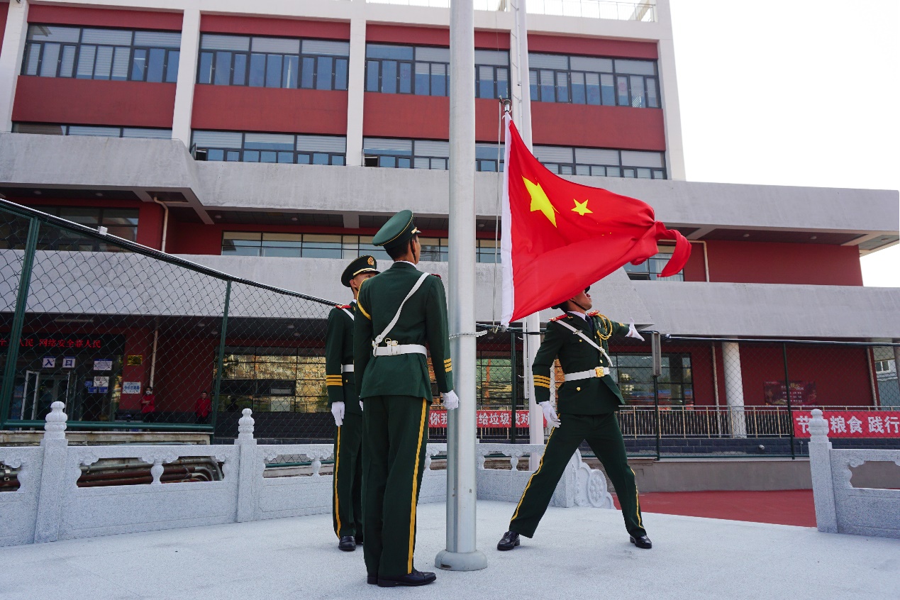 伴随着雄壮的国歌声,五星红旗冉冉升起,开学典礼正式拉开了序幕。