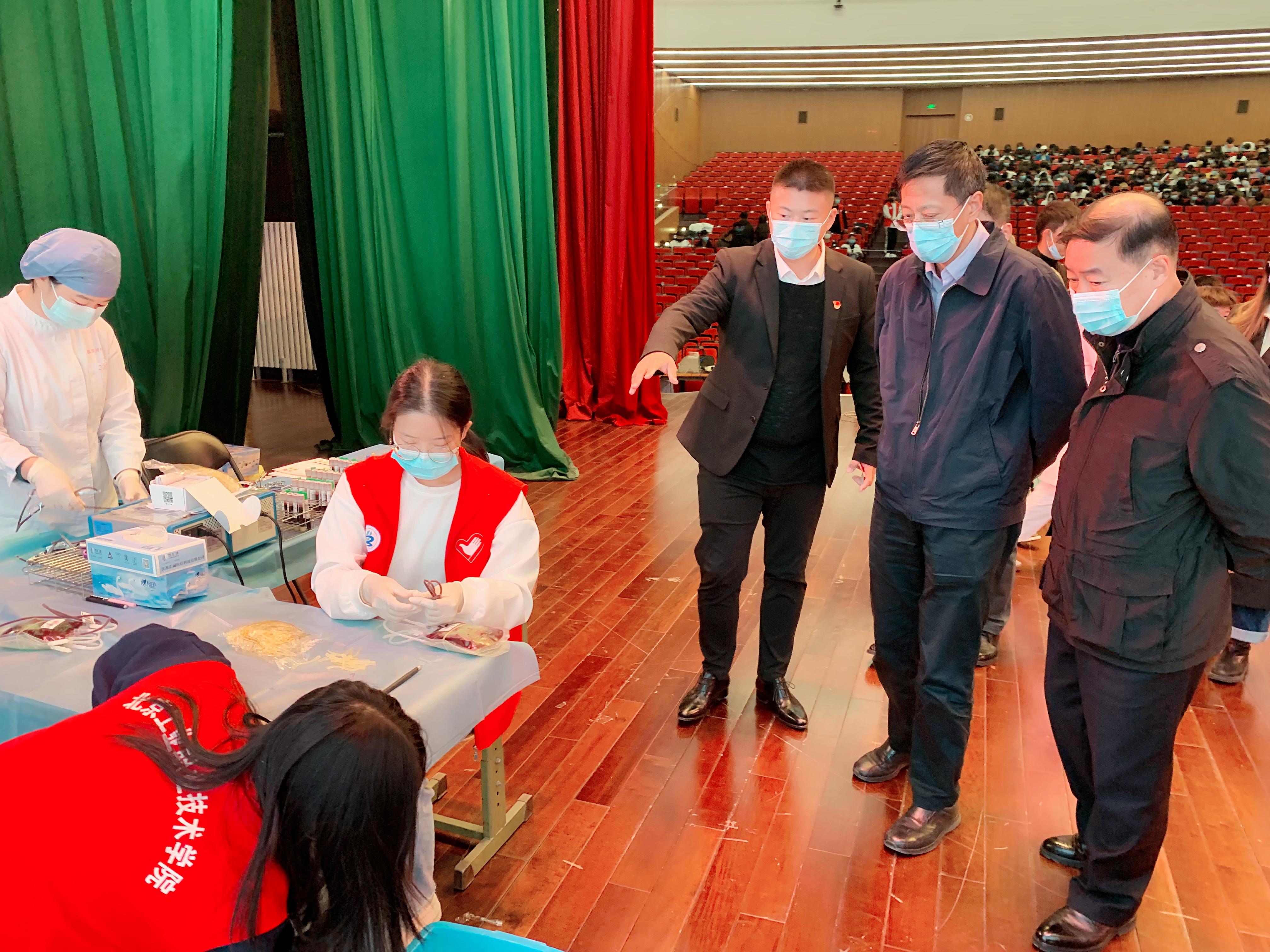 校党委副书记魏晓东、团委书记郑兴、团委副书记赵萌看望参与爱心献血的学生