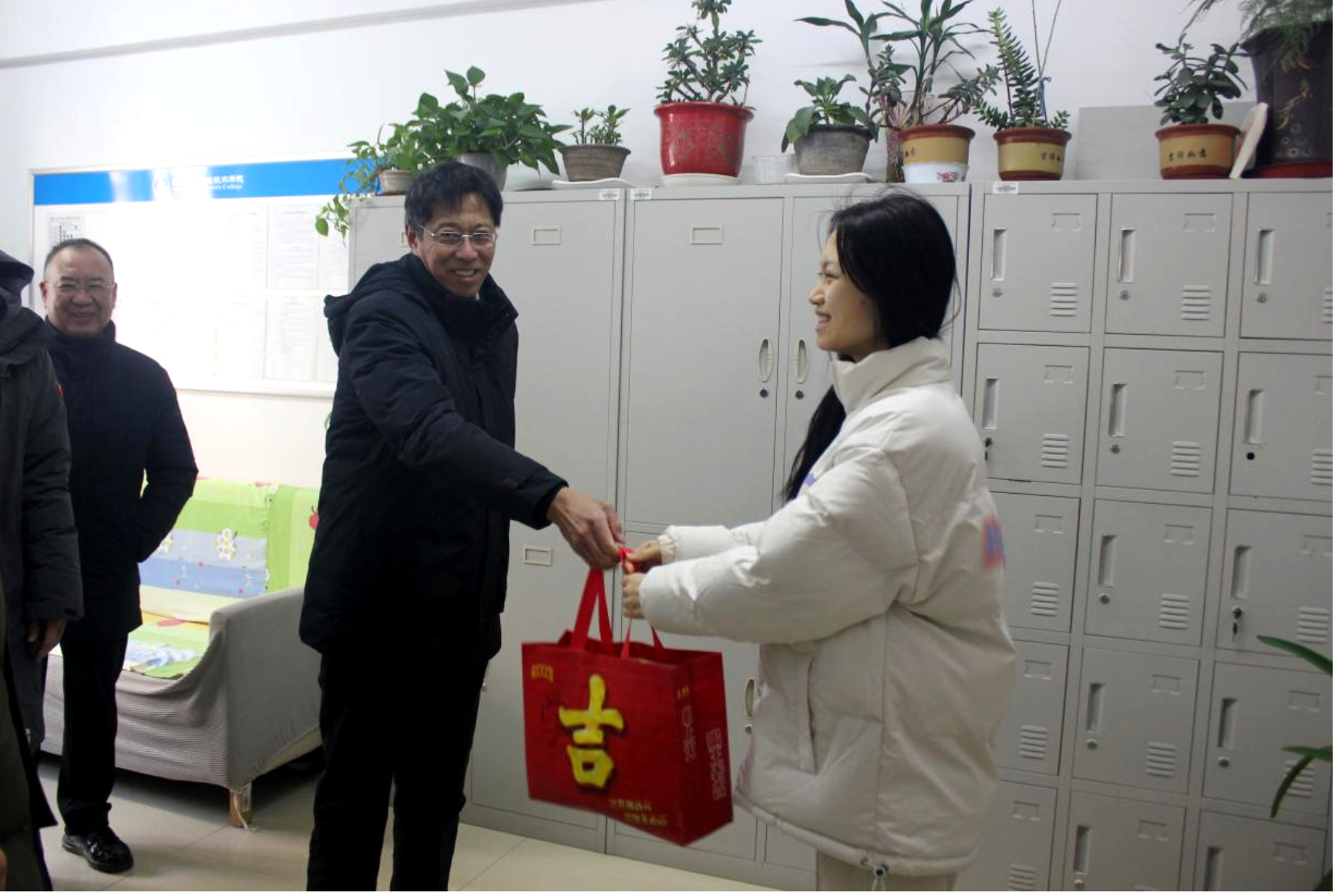党委书记高喜军还看望了留校的学生,关心询问留校学生假期的生活等情况,给同学带来了春节前夕的问候和祝福。